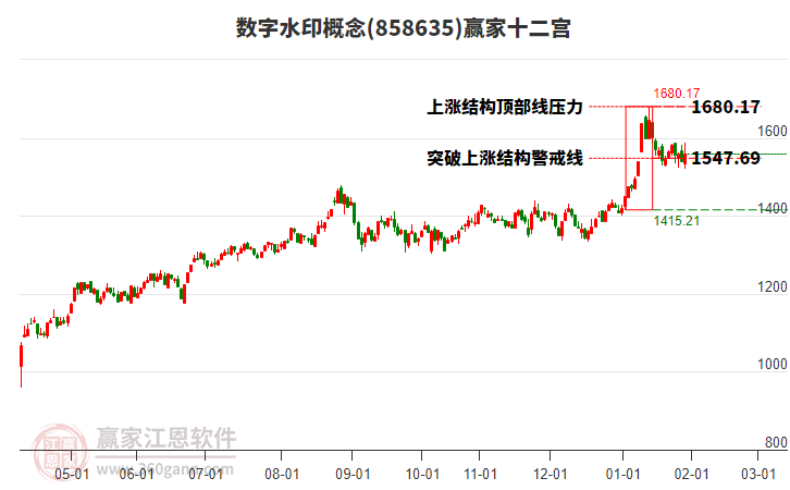今天概念處在2026年1月15日形成的上漲結(jié)構(gòu)底部線與警戒線之間,今日概念大幅上漲2.41%,目前處于底部線上方。依據(jù)贏家十二宮多空能量守恒規(guī)則,上漲結(jié)構(gòu)底部線位置是多空能量轉(zhuǎn)換的一個(gè)關(guān)鍵位置。如底部線1415.21點(diǎn)支撐不破,由多方能量主導(dǎo)上攻,在警戒線1547.69點(diǎn)尋找多空能量平衡。如跌破底部線,空方動(dòng)能占據(jù)主導(dǎo),打開(kāi)新的下跌空間。
