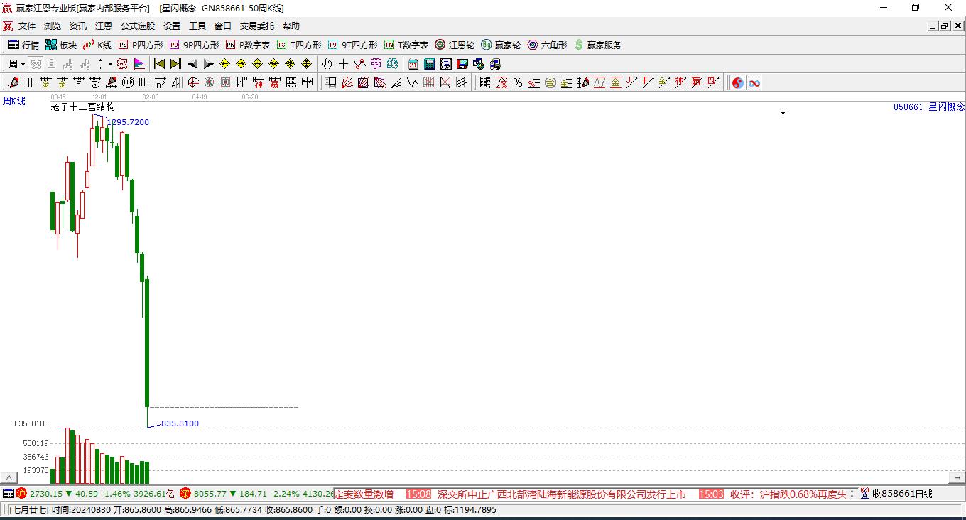 風(fēng)險提示:本頁面利用《贏家江恩軟件》《贏家十二宮軟件》系列工具客觀數(shù)據(jù)進(jìn)行數(shù)據(jù)模型運(yùn)算,系軟件圖表語言,由此得出的相關(guān)結(jié)論,不供參考,不構(gòu)成任何投資建議。贏家財富網(wǎng)版權(quán)所有,轉(zhuǎn)載請注明出處。