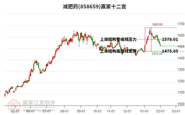 今天概念處在2026年1月15日形成的上漲結(jié)構(gòu)底部線與警戒線之間,今日概念上漲1.76%,目前處于底部線上方。依據(jù)贏家十二宮多空能量守恒規(guī)則,上漲結(jié)構(gòu)底部線位置是多空能量轉(zhuǎn)換的一個關(guān)鍵位置。如底部線1475.05點支撐不破,由多方能量主導(dǎo)上攻,在警戒線1578.01點尋找多空能量平衡。如跌破底部線,空方動能占據(jù)主導(dǎo),打開新的下跌空間。