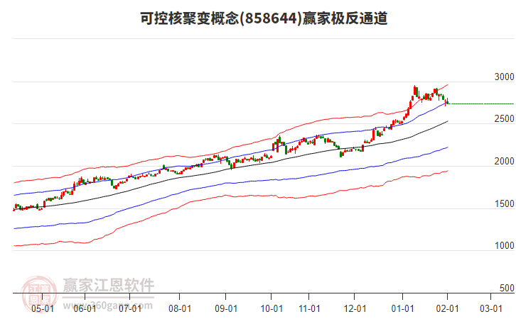 概念于2025年12月5日突破站穩(wěn)生命線,展開一波上攻,至今日持續(xù)40日,當(dāng)前概念上穿強(qiáng)勢通道線2774.5013點(diǎn),由強(qiáng)勢通道進(jìn)入超強(qiáng)通道,依據(jù)贏家江恩極反通道規(guī)則,站穩(wěn)一線看高一線。若能有效站穩(wěn)強(qiáng)勢通道線,則有望持續(xù)上攻至強(qiáng)勢外軌線2977.9385點(diǎn)附近,若不能站穩(wěn)強(qiáng)勢通道線,由超強(qiáng)通道回歸強(qiáng)勢通道,注意短期回調(diào)。