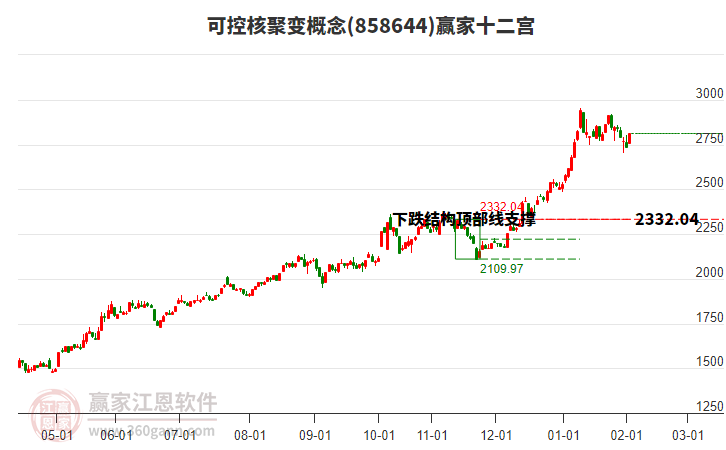 當(dāng)天概念處于前期2025年11月24日形成的下跌結(jié)構(gòu)頂部線2332.04點(diǎn)上方,近期概念在此位置呈現(xiàn)震蕩走勢,震蕩區(qū)間為2744.48-2917.73,今日收盤2833.92點(diǎn),大幅上漲3.64%。依據(jù)贏家十二宮多空能量守恒規(guī)則,下跌結(jié)構(gòu)頂部線是多空能量轉(zhuǎn)換的關(guān)鍵位置,多方能量已連續(xù)釋放,空方能量不斷聚集。當(dāng)前概念若能站穩(wěn)上漲結(jié)構(gòu)頂部線2332.04,多方有望再一次發(fā)動上攻,若跌破上漲結(jié)構(gòu)頂部線,則概念將會向下警戒線2221.01點(diǎn)位置附近尋找新的平衡位。