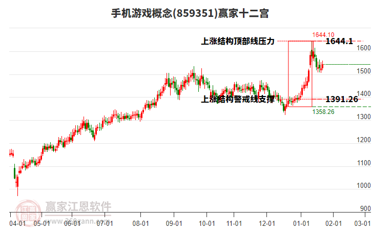 概念自近期高點1644.1跌至今日1535.58點,共下跌108.52點,跌幅7.07%,當前概念處于2026年1月13日形成的上漲結(jié)構(gòu)頂部線與警戒線之間。依據(jù)贏家十二宮多空能量守恒規(guī)則,若多方能量再度聚集發(fā)力上攻,有望再度上攻關(guān)注結(jié)構(gòu)頂部線1644.1點尋找平衡位;若跌破警戒線,空方繼續(xù)主導(dǎo),則將進一步下探結(jié)構(gòu)底部線1358.26點尋找平衡位。