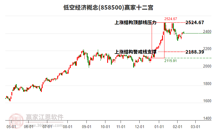 今日概念跌幅0.26%,目前受到24日前形成的上漲結(jié)構(gòu)頂部線2524.67點(diǎn)壓制,本輪自前方低點(diǎn)2月2日2319.12點(diǎn),上漲至今日已持續(xù)9日,多方能量得到釋放,空方能量逐漸增強(qiáng)。依據(jù)贏家十二宮結(jié)構(gòu)規(guī)則,概念若不能有效突破站穩(wěn)上漲結(jié)構(gòu)頂部線,多方能量逐漸衰竭,空方能量逐漸主導(dǎo),向下方警戒線2188.39點(diǎn)附近尋找新的平衡位。若向上突破站穩(wěn)頂部線2524.67,有望突破前期形成的高點(diǎn)。