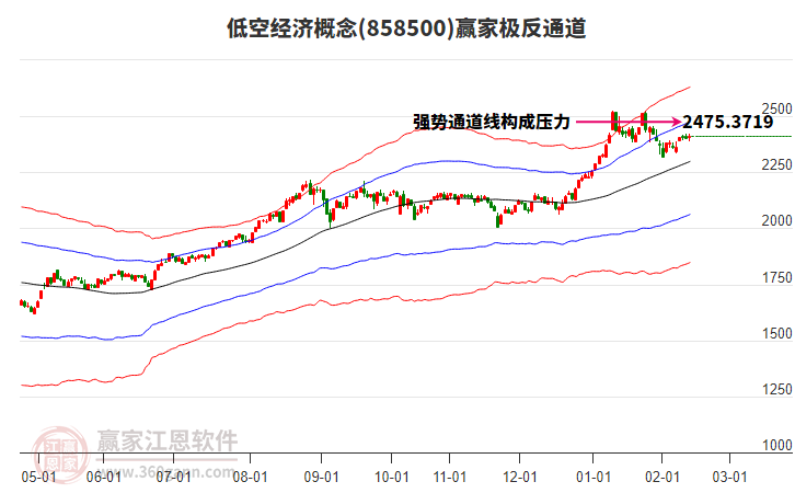 目前K線以倒T形線收盤(pán),收盤(pán)價(jià)2408.15,概念自2月2日低點(diǎn)2319.12展開(kāi)上攻,持續(xù)9日,抵達(dá)強(qiáng)勢(shì)通道線2482.31點(diǎn)壓力位附近受阻,如能有效突破強(qiáng)勢(shì)通道線,則有望繼續(xù)上攻強(qiáng)勢(shì)外軌線2637.5724點(diǎn),若不能突破則將回探生命線2305.6311點(diǎn)附近尋找支撐。極反通道規(guī)則顯示,一線受阻,回調(diào)一線。