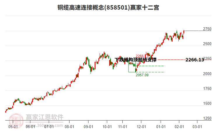 目前概念處于前期2025年11月21日形成的下跌結(jié)構(gòu)頂部線2266.13點上方,近期概念在此位置呈現(xiàn)震蕩走勢,震蕩區(qū)間為2763.12-2574.64,今日收盤2768.62點,下跌1.39%。依據(jù)贏家十二宮多空能量守恒規(guī)則,下跌結(jié)構(gòu)頂部線是多空能量轉(zhuǎn)換的關鍵位置,多方能量已連續(xù)釋放,空方能量不斷聚集。當前概念若能站穩(wěn)上漲結(jié)構(gòu)頂部線2266.13,多方有望再一次發(fā)動上攻,若跌破上漲結(jié)構(gòu)頂部線,則概念將會向下警戒線2161.61點位置附近尋找新的平衡位。