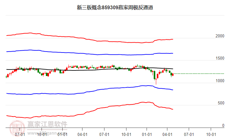 本周K線以陰線收盤,收盤價1966.57,概念自4月11日低點1263.42展開上攻,持續(xù)42周,抵達強勢通道線2063.1694點壓力位附近受阻,如能有效突破強勢通道線,則有望繼續(xù)上攻強勢外軌線2446.7145點,若不能突破則將回探生命線1636.2859點附近尋找支撐。極反通道規(guī)則顯示,一線受阻,回調(diào)一線。