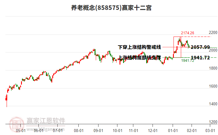 今日下穿11日前形成的上漲結(jié)構(gòu)警戒線2057.99點(diǎn),自前期高點(diǎn)1月14日,至今日概念下跌134.2點(diǎn),短期處于多空能量動(dòng)態(tài)平衡,依據(jù)贏家十二宮多空能量守恒規(guī)則,上漲結(jié)構(gòu)警戒線是多空能量平衡爭奪點(diǎn),突破或跌破往往意味著平衡打破。如確認(rèn)跌破警戒線,多空能量平衡或?qū)⒋蚱?,同時(shí)空方將成為主導(dǎo),向下方結(jié)構(gòu)底部線1941.72點(diǎn)尋找新的能量平衡位。若快速收復(fù)警戒線,則多空能量可能再次展開反復(fù)爭奪。