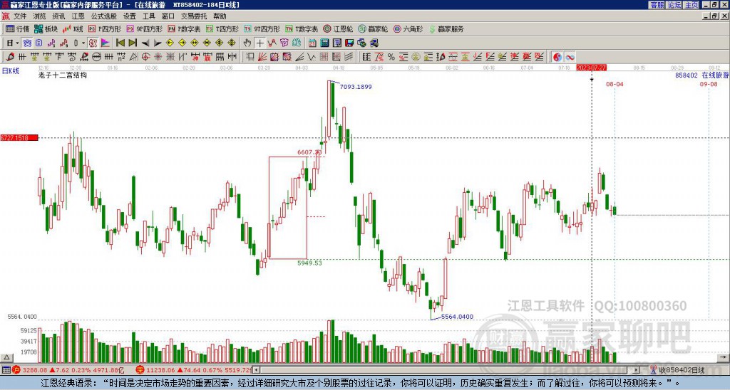 依據(jù)贏家江恩趨勢工具技術(shù)分析得出,目前處于短線上漲趨勢中, 依據(jù)贏家江恩價(jià)格工具得出:當(dāng)前支撐位:7416.94,當(dāng)前阻力位:8846.23,由贏家江恩時(shí)間周期工具展示得出:下一個(gè)時(shí)間窗口為。