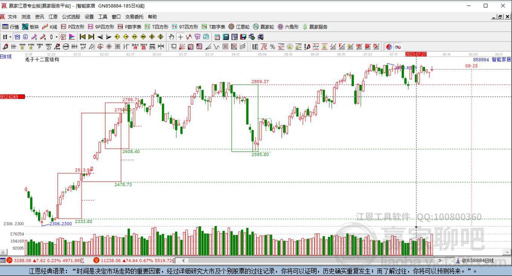 風(fēng)險提示:本頁面利用《贏家江恩軟件》《贏家十二宮軟件》系列工具客觀數(shù)據(jù)進(jìn)行數(shù)據(jù)模型運(yùn)算,系軟件圖表語言,由此得出的相關(guān)結(jié)論,不供參考,不構(gòu)成任何投資建議。贏家財富網(wǎng)版權(quán)所有,轉(zhuǎn)載請注明出處。