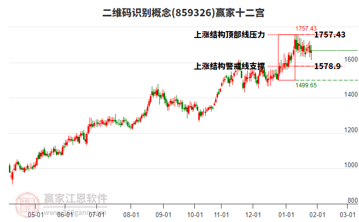 今天下穿14日前形成的上漲結(jié)構(gòu)警戒線1578.9點(diǎn),自前期高點(diǎn)1月12日,至今日概念下跌180.17點(diǎn),短期處于多空能量動(dòng)態(tài)平衡,依據(jù)贏家十二宮多空能量守恒規(guī)則,上漲結(jié)構(gòu)警戒線是多空能量平衡爭(zhēng)奪點(diǎn),突破或跌破往往意味著平衡打破。如確認(rèn)跌破警戒線,多空能量平衡或?qū)⒋蚱?,同時(shí)空方將成為主導(dǎo),向下方結(jié)構(gòu)底部線1499.65點(diǎn)尋找新的能量平衡位。若站穩(wěn)警戒線,有望展開(kāi)一波多方主導(dǎo)的上攻。