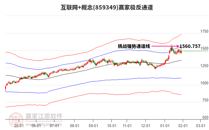 目前K線以大十字星收盤,收盤價1484.85,概念自1月21日低點(diǎn)1435.82展開上攻,持續(xù)7日,抵達(dá)強(qiáng)勢通道線1565.9396點(diǎn)壓力位附近受阻,如能有效突破強(qiáng)勢通道線,將打開上行空間,進(jìn)入超強(qiáng)通道,若不能突破則將回探生命線1362.5178點(diǎn)附近尋找支撐。極反通道規(guī)則顯示,一線受阻,回調(diào)一線。