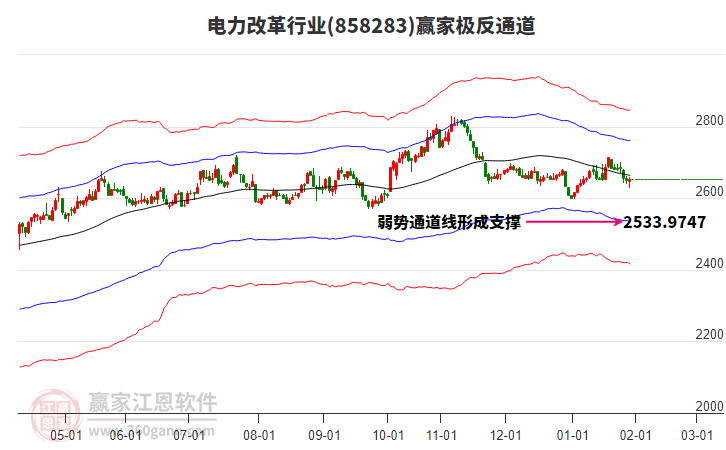 目前行業(yè)處于弱勢通道內(nèi),近期自1月20日高點(diǎn)持續(xù)下跌至今日,跌幅達(dá)2.38%,依據(jù)贏家極反通道規(guī)則:站穩(wěn)一線看高一線,關(guān)注弱勢通道線2530.291點(diǎn)支撐,如支撐不破,保持在弱勢通道內(nèi),短線有望展開反彈,上方壓力關(guān)注生命線2662.58點(diǎn)。若跌破弱勢通道線2530.291,進(jìn)入超弱通道,打開下跌空間。