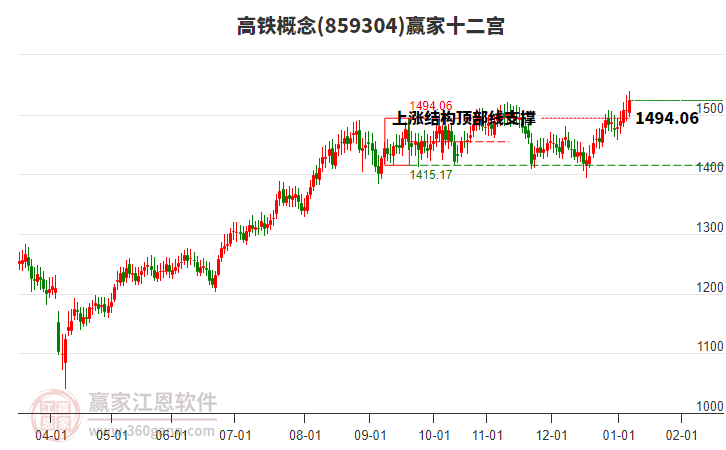 當(dāng)前處于88天前形成的贏家十二宮上漲結(jié)構(gòu)頂部線1494.06點(diǎn)上方,目前此位置由前方高點(diǎn)1月26日下跌至今日,跌幅5.08%。依據(jù)贏家十二宮結(jié)構(gòu)規(guī)則,若跌破頂部線,多方能量持續(xù)衰減,上漲動(dòng)能不足,空方能量占據(jù)主導(dǎo),向下警戒線1454.62點(diǎn)尋找多空能量平衡位。
