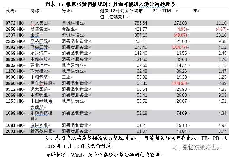 第三,適度布局潛在港股通成分股。2月6日恒生綜指成分股將進行新一輪調(diào)整,3月初港股通成分股也將隨之調(diào)整。根據(jù)恒生綜指調(diào)整規(guī)則和港股通調(diào)整規(guī)則,我們發(fā)現(xiàn)閱文集團、易鑫集團、雷蛇、睿見教育、中糧包裝等公司(詳見表1)可能在3月進入港股通,港股通可能成為重估的觸發(fā)因素,投資者可以精選性價比合理的股票提前布局。