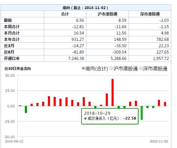 Wind數(shù)據(jù)顯示,港股通南向資金投資情緒依然不高,上周港股通南向共流出人民幣12.81億元,其中滬市港股通凈流出11.66億元,深市港股通凈流出1.15億元;5個交易日中有3個交易日資金凈流出,最高單日凈流出22.58億元。
