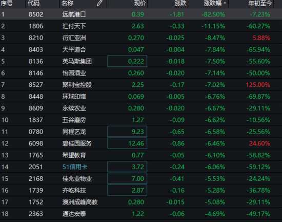 新浪財經(jīng)統(tǒng)計發(fā)現(xiàn),在今年202只新股上市中,破發(fā)率高達(dá)8成。截至發(fā)稿,遠(yuǎn)航港口遭遇洗倉,股價暴跌82.5%,匯付天下跌11%,同程藝龍跌6.58%,碧桂園服務(wù)跌6.5%,51信用卡跌6%。