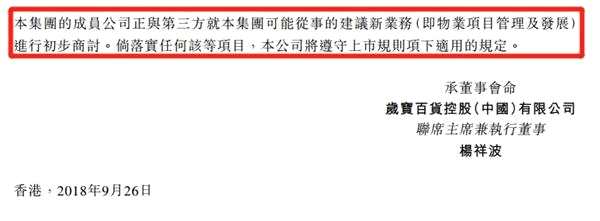最后公告還表示,集團(tuán)的成員公司正與第三方就集團(tuán)可能從事的建議新業(yè)務(wù)(即物業(yè)項(xiàng)目管理及發(fā)展)進(jìn)行初步商討。