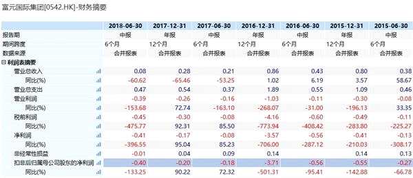 富元國(guó)際近年來(lái)業(yè)績(jī)表現(xiàn)不佳,2016年公司凈虧損3.71億港元,2017年凈虧損2000萬(wàn)港元,2018年上半年凈虧損4000萬(wàn)港元。