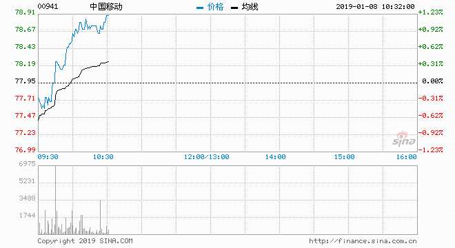 受惠與字節(jié)跳動簽訂戰(zhàn)略合作協(xié)議消息利好,中移動(00941)現(xiàn)價上升1.03%,報78.75元,盤中高見78.95元,成交約481萬股,涉資3.76億元.中移動暫連漲四日,以現(xiàn)價計,累升7.3%。