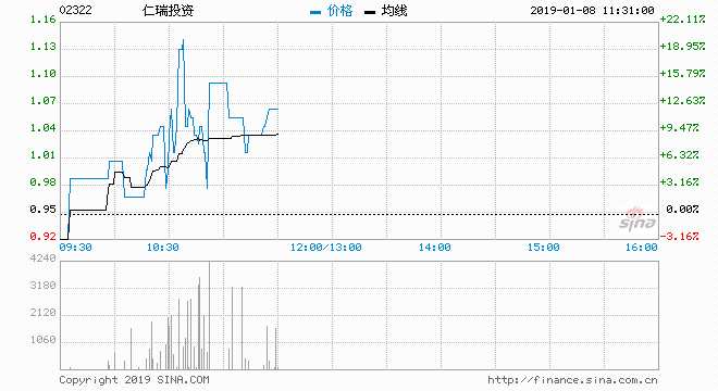 仁瑞投資(02322)現(xiàn)報1.02元,升7.37%,盤中高見1.07元,創(chuàng)逾兩年新高,暫成交達157萬股,涉資159萬元。