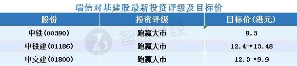 瑞信發(fā)表的報(bào)告稱,預(yù)期將有更多有利未來基建固定資產(chǎn)投資提升的信號(hào),相信2019年基建固定資產(chǎn)投資將達(dá)10%的增長(zhǎng),而去年首十一月增長(zhǎng)僅3.7%。國(guó)家發(fā)改委自2018年下半年已加快審批基建項(xiàng)目,預(yù)計(jì)可為承建商新訂單及收入帶來穩(wěn)健支撐,此外國(guó)家鐵路公司計(jì)劃2019年新增6800公里鐵路,當(dāng)中包括3200公里的高鐵,雖然未具體投露投資金額,但該行估算2019年鐵路總投資將高于8000億元人民幣,而2018年則為8028億元人民幣。