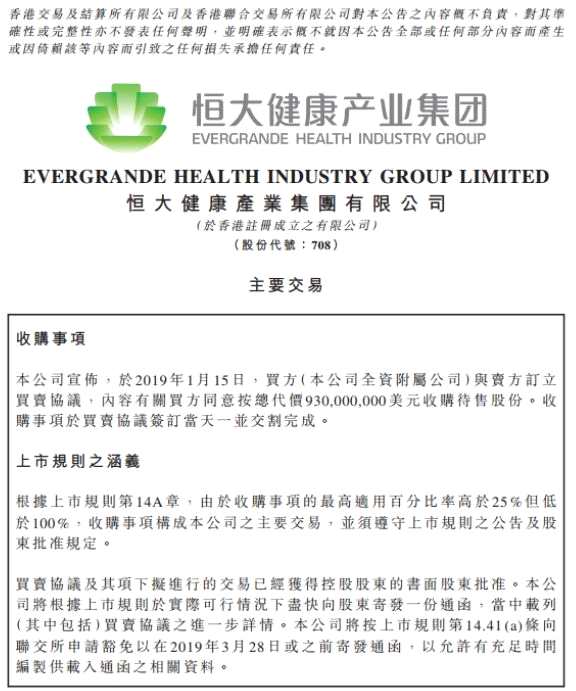 1月15日,恒大集團(tuán)旗下恒大健康發(fā)布公告稱,以9.3億美元成功收購全球性新能源智能汽車集團(tuán)NEVS的51%股權(quán)并獲得多數(shù)董事席位。