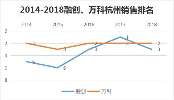 萬科在杭州的資歷比融創(chuàng)深厚不少,從2010年至今,始終沒有跌出過杭州權(quán)益銷售排行前三。