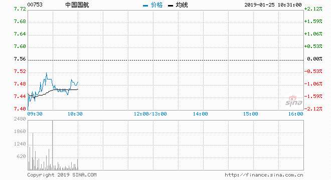 國(guó)航(00753) 7.43元 跌1.72% ∥