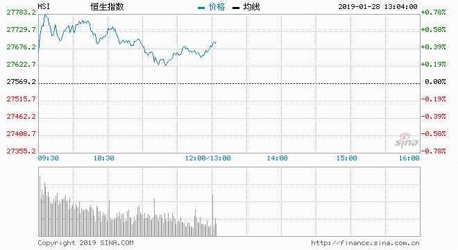 華府終于結(jié)束多日停擺,刺激亞洲股市普遍造好,惟港股大市今日升幅有限,主要受議息前夕、美國(guó)科網(wǎng)股業(yè)績(jī)待公布等因素影響,恒指今日高開(kāi)逾百點(diǎn)后升幅收窄,潤(rùn)電(00836)急跌近3%拖累大市表現(xiàn),而恒安(01044)及中石化(00386)升逾2%撐市,恒指半日收?qǐng)?bào)27684,升115點(diǎn)或升0.42%,盤中在27617至27790之間波動(dòng),主板成交538.86億元.國(guó)指收?qǐng)?bào)10934點(diǎn),升61點(diǎn)或0.56%。