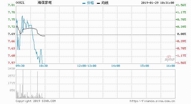發(fā)改委推銷費(fèi)增長方案 海信家電升近1%創(chuàng)六個月新高