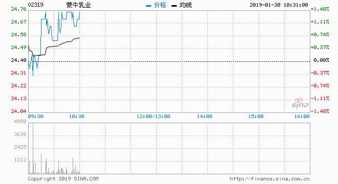 蒙牛乳業(yè)(02319) 24.80元 升1.64%