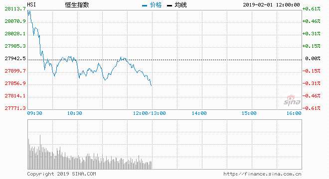 午評:恒指跌0.31%失守28000點 春節(jié)消費股集體大漲