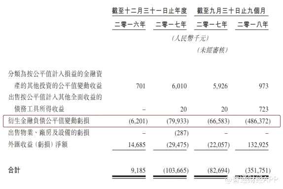 虧損增加主要由于衍生金融負(fù)債公平值變動(dòng)虧損,及研發(fā)開支導(dǎo)致。2016、2017及2018年首9個(gè)月,全面開支總額大幅增加,分別為2.53億元人民幣(單位下同)、3.44億元及11.6億元,衍生金融負(fù)債公平值變動(dòng)虧損分別為620.1萬(wàn)元、7993.3萬(wàn)元、4.86億元。