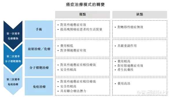 基石藥業(yè)的研發(fā)核心是腫瘤免疫的聯(lián)合療法。癌癥治療領(lǐng)域經(jīng)歷了三次重大變革,第一次從手術(shù)轉(zhuǎn)向化療藥物,第二次從化療藥物演變至分子靶向藥物,第三次則轉(zhuǎn)至免疫治療。