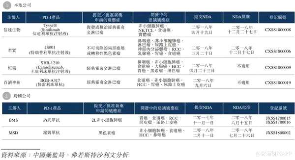 截至2018年12月,中國(guó)獲批準(zhǔn)的PD-1療法有4種,分別為百時(shí)美施貴寶的OPDIVO (納武單抗)、MSD的KEYTRUDA (派姆單抗)、君實(shí)的特瑞普利單抗及信達(dá)生物的Tyvyt (信迪利單抗),無(wú)獲批準(zhǔn)的PD-L1療程。