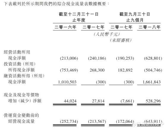往績(jī)紀(jì)錄期內(nèi),經(jīng)營(yíng)現(xiàn)金凈額持續(xù)為負(fù)。2016及2017年,經(jīng)營(yíng)活動(dòng)所用現(xiàn)金凈額分別是2.13億元、2.4億元,2018年首9個(gè)月,經(jīng)營(yíng)活動(dòng)所用現(xiàn)金凈額達(dá)6.28億元?,F(xiàn)金流是一個(gè)企業(yè)的血液,失血過(guò)多,企業(yè)隨時(shí)都有破產(chǎn)風(fēng)險(xiǎn)。不過(guò)好在基石藥業(yè)還能融到錢,2018年9個(gè)月,融資活動(dòng)所得現(xiàn)金凈額約16.62億元,暫時(shí)能夠滿足運(yùn)營(yíng)資金需求。