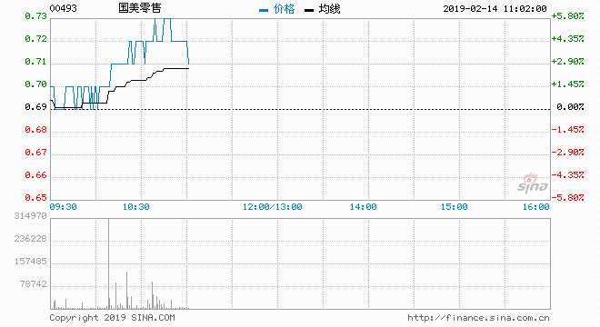 國(guó)美零售(00493)現(xiàn)升4.35%,報(bào)0.72元,盤中高見0.72元,創(chuàng)近3個(gè)月高位,破百天線(0.71元);成交約9159萬股,涉資6435萬元,主動(dòng)買盤72%。