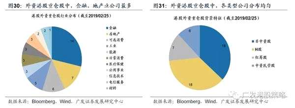 第一,行業(yè)方面,外資港股重倉股中金融、地產(chǎn)、消費行業(yè)公司占比較高,而原材料行業(yè)僅1家公司為外資重倉;