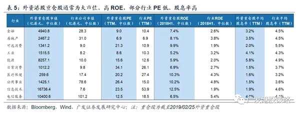 第三,持股特征方面,外資持有港股與A股重倉股在基本面特征上“既有共性,又存差異”:1)共性體現(xiàn)在外資均偏好大市值、高ROE公司;2)與北上資金持股風(fēng)格不同,外資對港股重倉股低估值特征并不明顯,部分行業(yè)重倉股PE高于行業(yè)水平,這可能與港股龍頭股存在估值溢價有關(guān);3)股息率來看,盡管港股整體股息率更高,但重倉股并沒有體現(xiàn)出突出的高股息。
