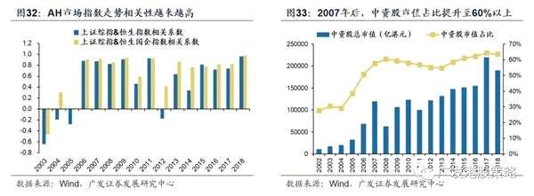 近年來,隨著互聯(lián)互通機制的推進,尤其是2016年底深港通開通以來,AH市場之間的聯(lián)動性顯著增強,恒生指數(shù)和上證指數(shù)走勢之間的相關(guān)性越來越高。