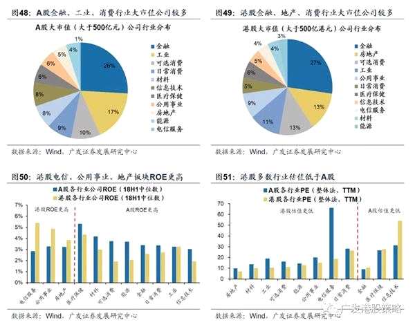 第二,外資在AH市場均偏好高ROE公司,從各行業(yè)ROE的跨市場對比來看,港股電信服務(wù)、公用事業(yè)、地產(chǎn)板塊的ROE相對A股更高。