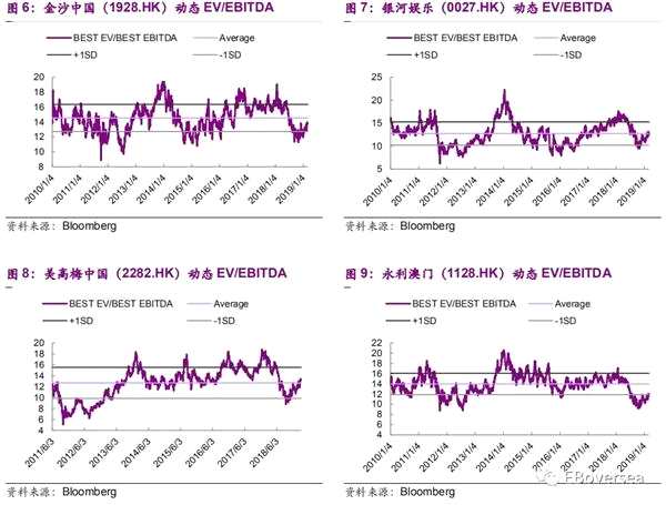 2、行業(yè)及核心公司估值情況 當(dāng)前澳門博彩板塊平均動(dòng)態(tài)EV/EBITDA為12.57x,略高于2010年以來的均值水平(12.39x)。