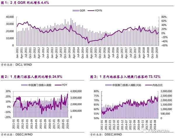 1、博彩及旅游數(shù)據(jù) 2月澳門GGR同比增長4.4%至254億澳門元,符合市場(chǎng)預(yù)期。19年1月入境澳門旅客人數(shù)同比增長24.9%(內(nèi)地旅客同比增長29.9%)。