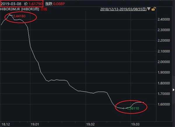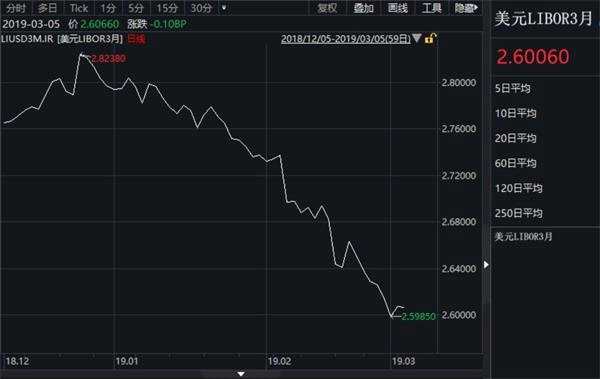 美元Libor也從去年末的高點2.8238%,下滑至3月7日的2.6006%。兩地利差逾98個基點。
