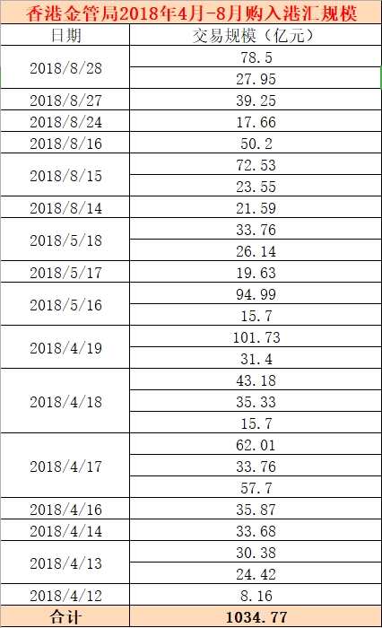 此前港元匯率頻頻觸及7.85,還是在2018年4月-8月之間。當時香港金管局5個月間26次出手,耗資超1000億港元入市穩(wěn)匯率。