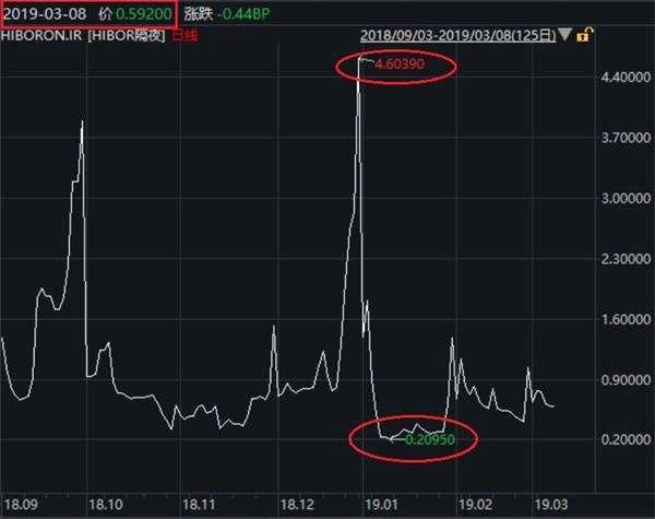 3月8日,港元隔夜Hibor再度走低至0.592%,比1月初大降逾400個基點。