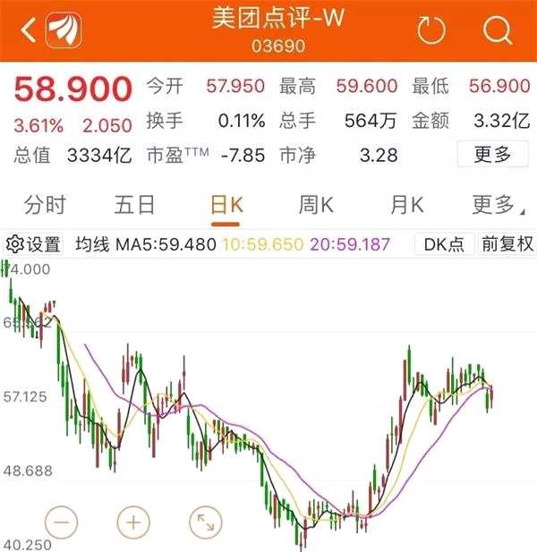 不過,上市后美團股價一路走低。2019年1月3日,盤中一度創(chuàng)出40.250港元/股的最低價紀(jì)錄。隨后走出一波強勁反彈,大漲逾40%。截至3月11日收盤,報58.900港元/股,仍低于發(fā)行價。