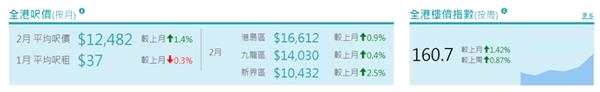 據(jù)美聯(lián)物業(yè)數(shù)據(jù)顯示,2月份全港平均尺價達(dá)到12482港元,環(huán)比上漲1.4%。在這之前,香港1月私人住宅售價指數(shù)已出現(xiàn)半年來的首次環(huán)比上漲,漲幅為0.1%。