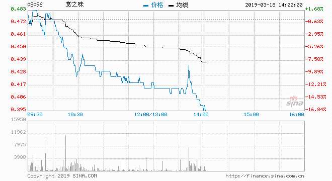 賞之味(08096)現(xiàn)價跌12.63%,報0.415元;成交約1520萬股,涉資684萬元。
