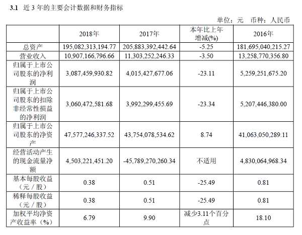 同時,年報稱,公司擬采用現(xiàn)金分紅方式,以2018年12月31日的股本總數(shù)7,646,385,238股為基數(shù),向全體股東每10股派發(fā)現(xiàn)金紅利1.80元(含稅)。